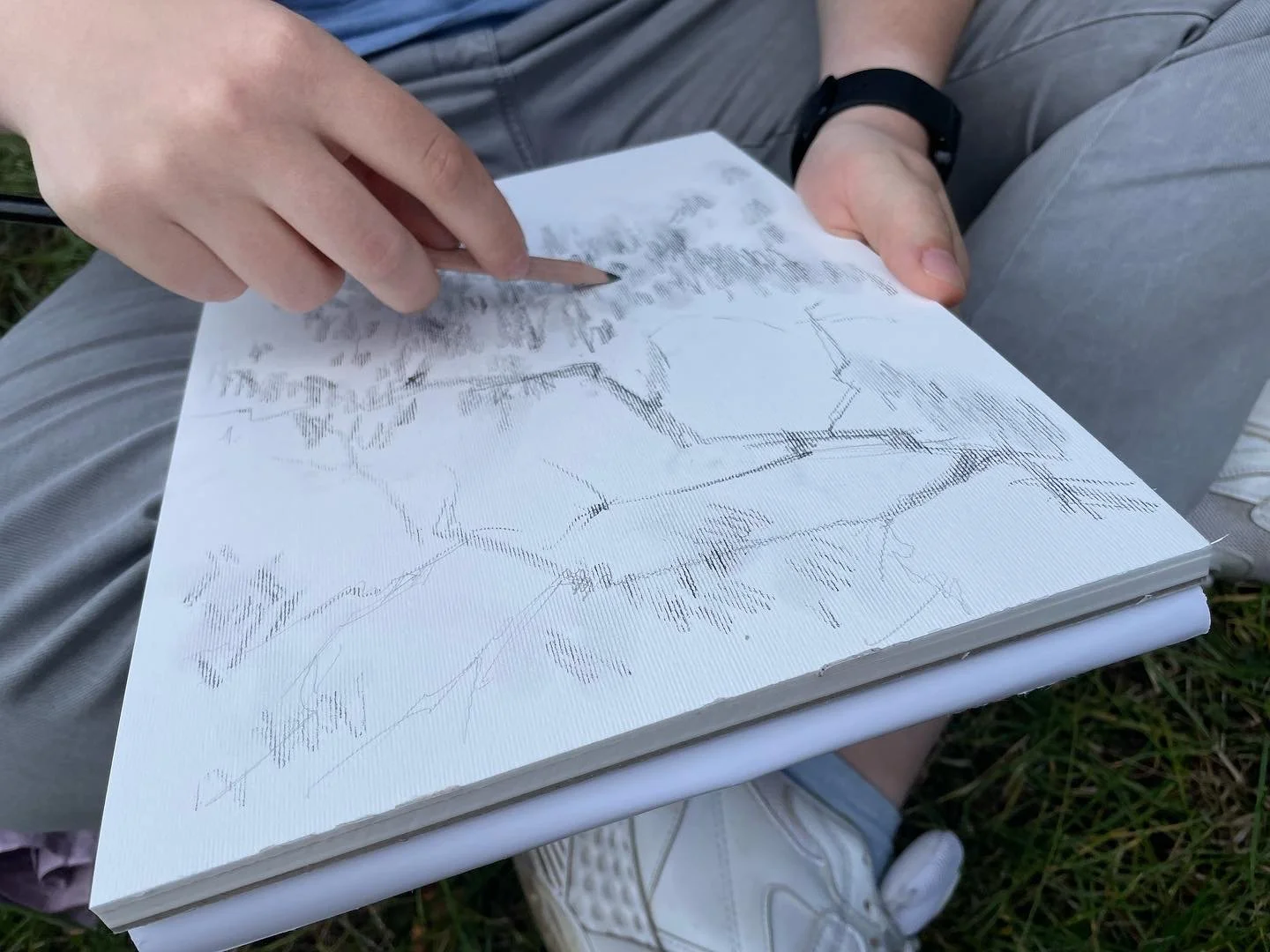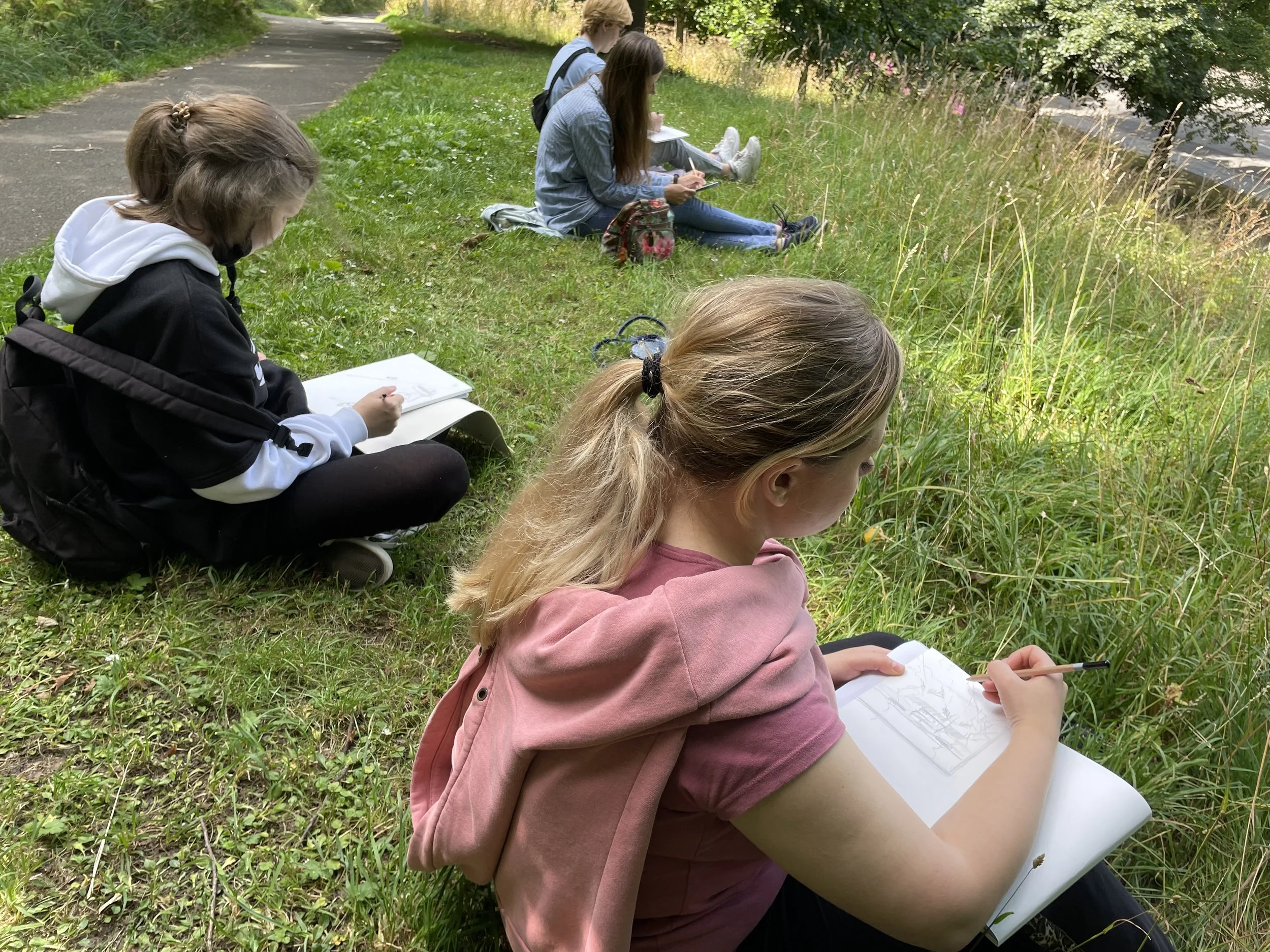 We began this session with a short walk around the area foraging, noticing, and sketching on the way. Back in the studio, we had the opportunity to reflect on our findings and feelings learning artistic ways to translate them into a collaborative art process.