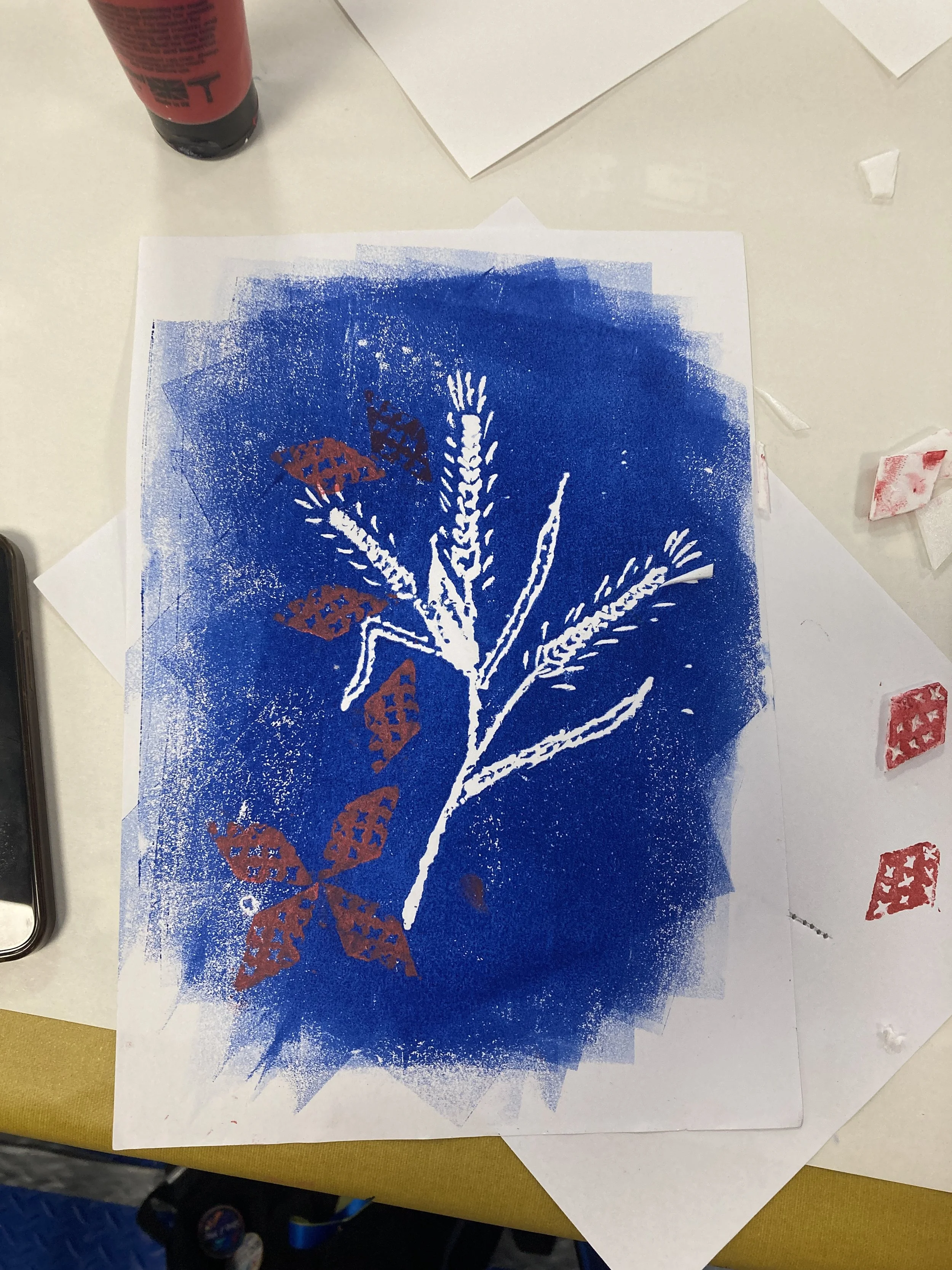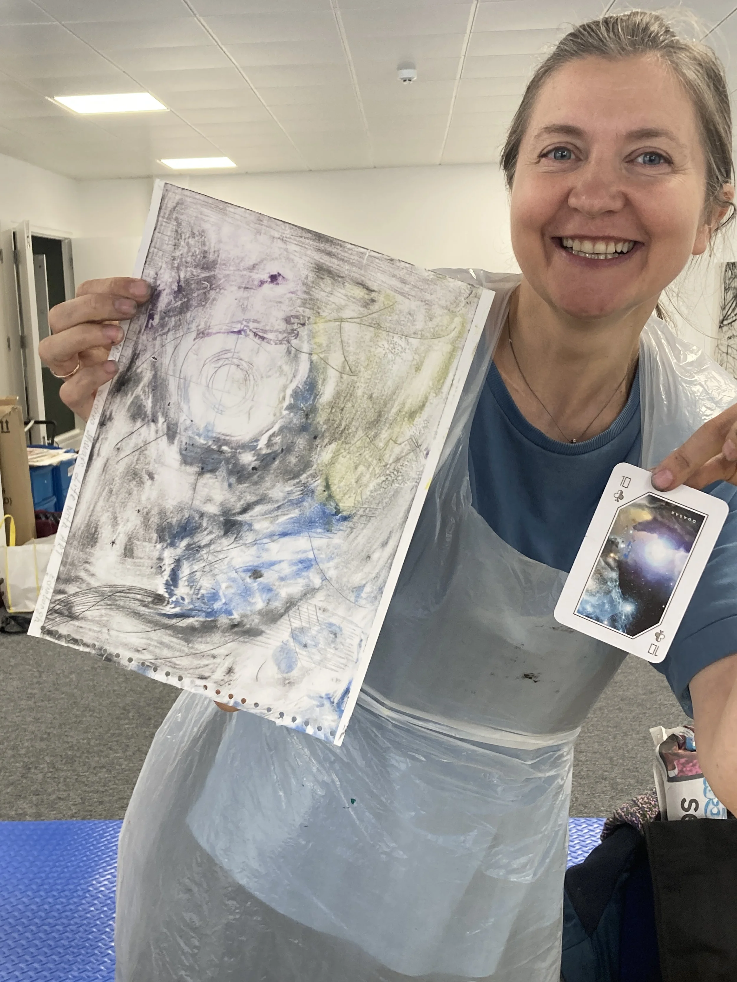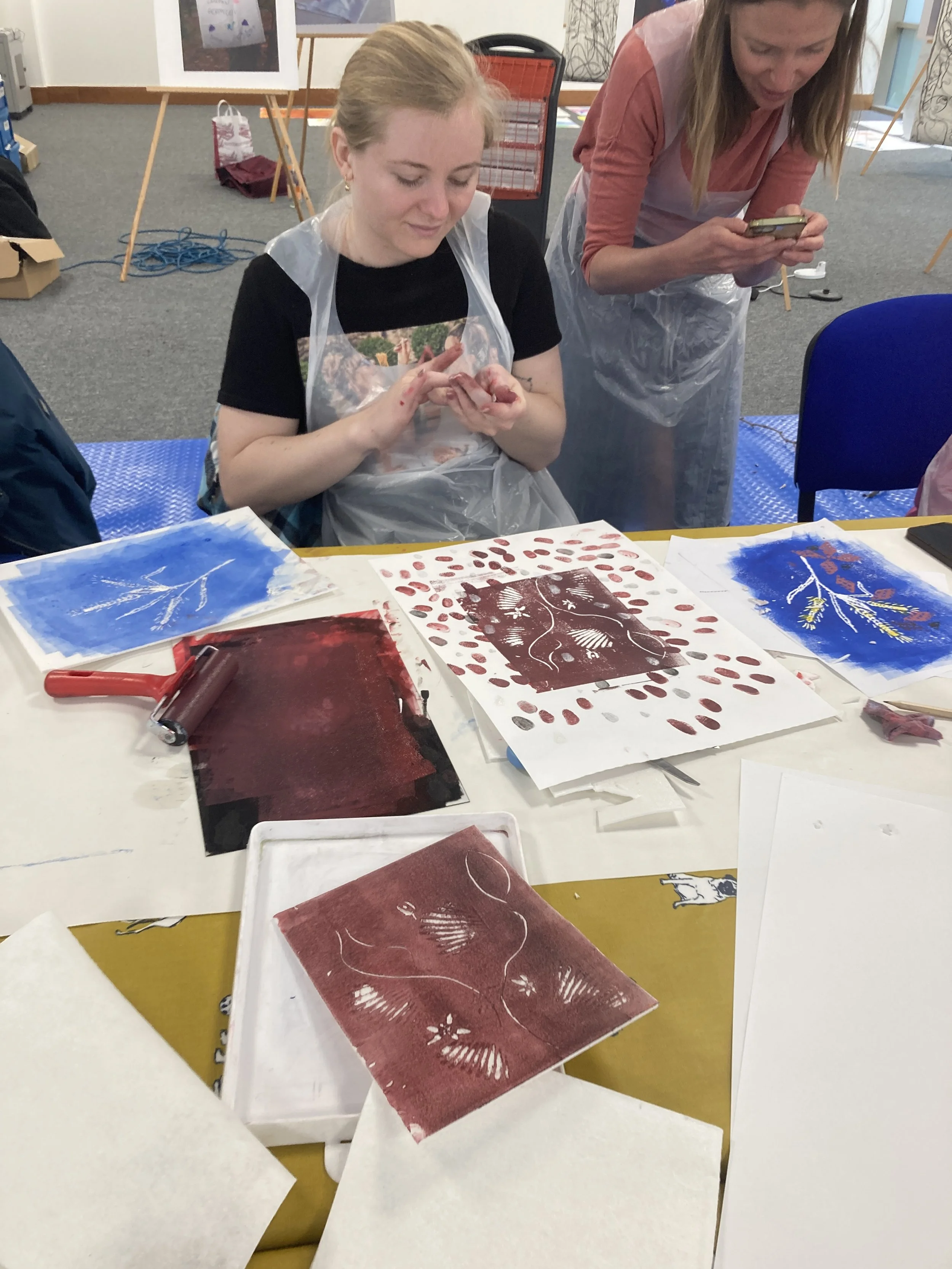 Every Friday since May 2023 the doors are open for the existing art and wellbeing group as well as for new joiners from displaced communities. The plans are to introduce participants to the basics of printmaking, and mixed media allowing both individual and collective creative expression. Co-created artwork was previously showcased for the group show Creative Forces on 6th October 2023 at Dean House, Edinburgh.